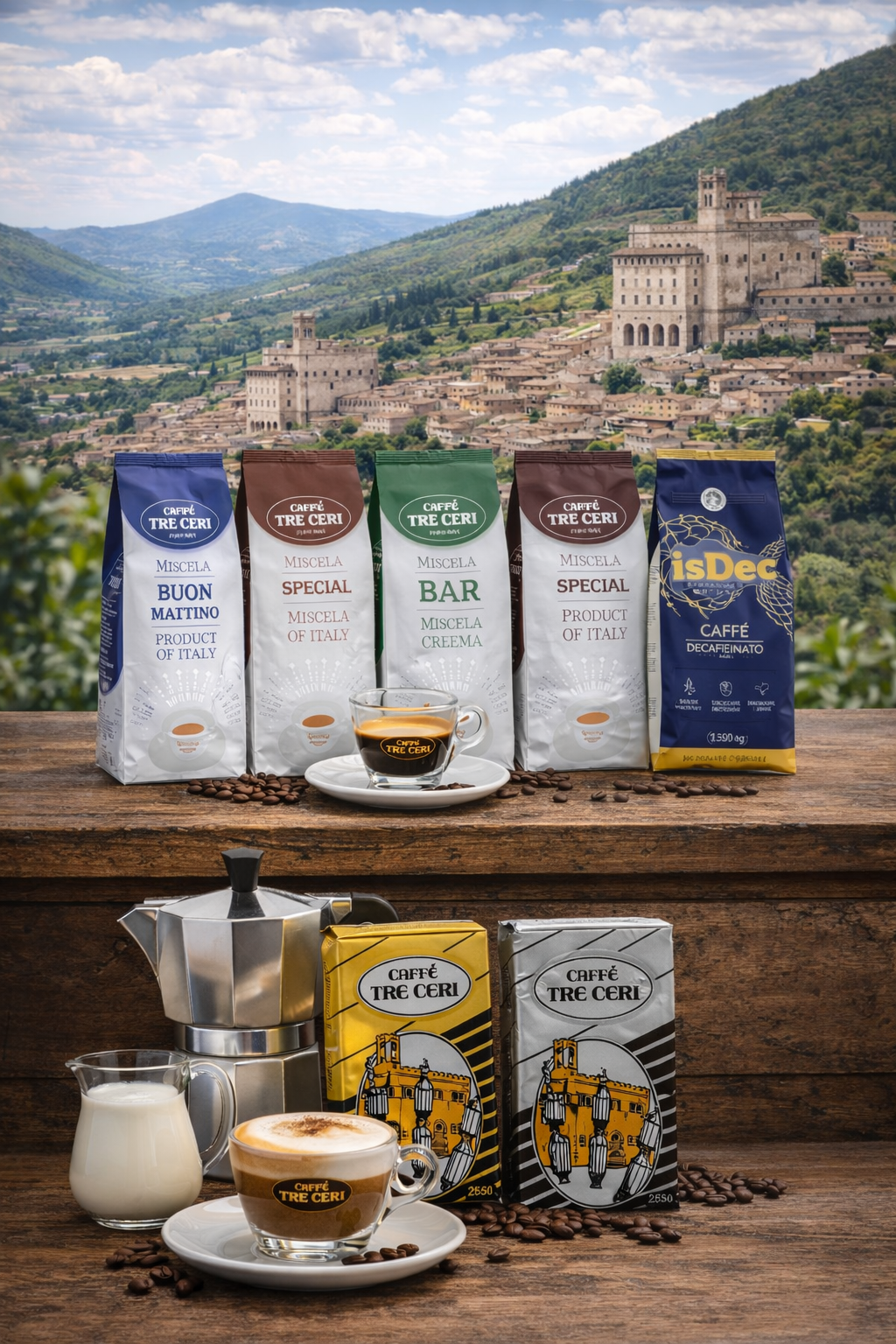 Neben unseren frischen italienischen Trüffeln steht Tartufi Zaccaria auch für echten italienischen Genuss. Mit Caffè Tre Ceri bringen wir hochwertige italienische Kaffeekultur nach Österreich.